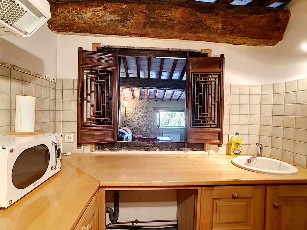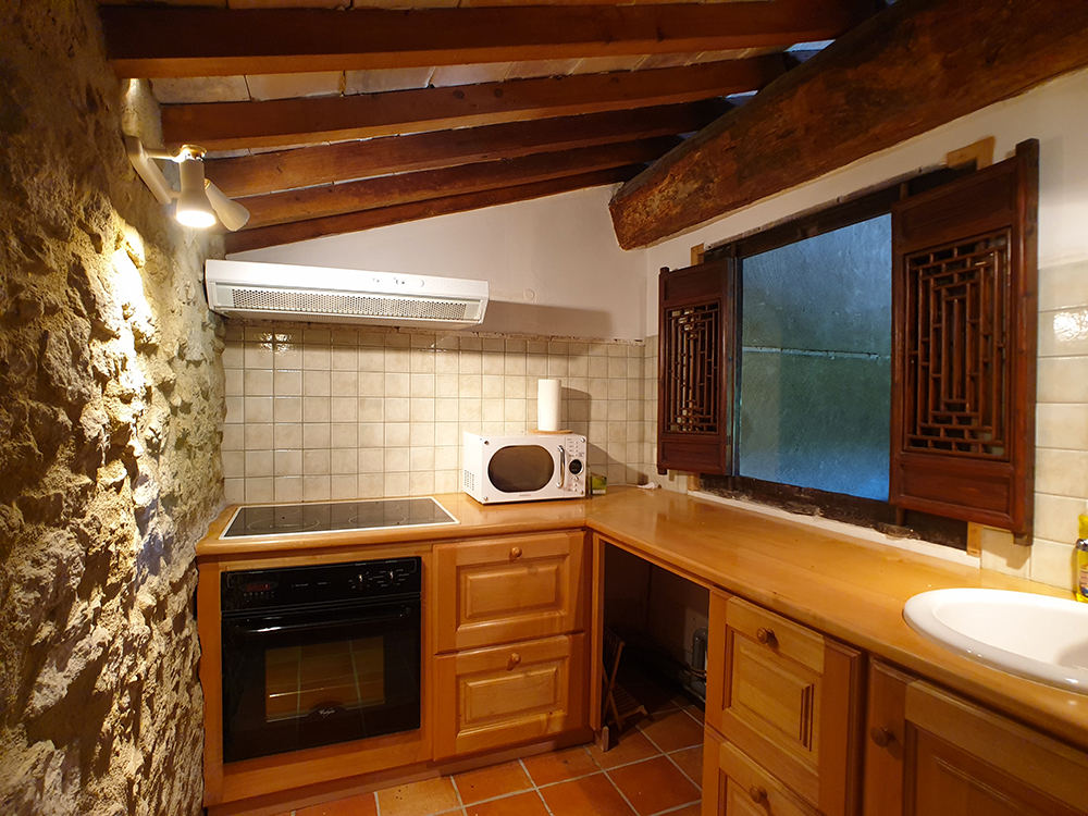 U vindt de slaapkamer en eel mooie badkamer op de benedenverdieping. de bovenste verdieping biedt een zeer stijlvolle kleine keuken en een mooie ruimte voor een eethoek en living onder prachtige houten balken.